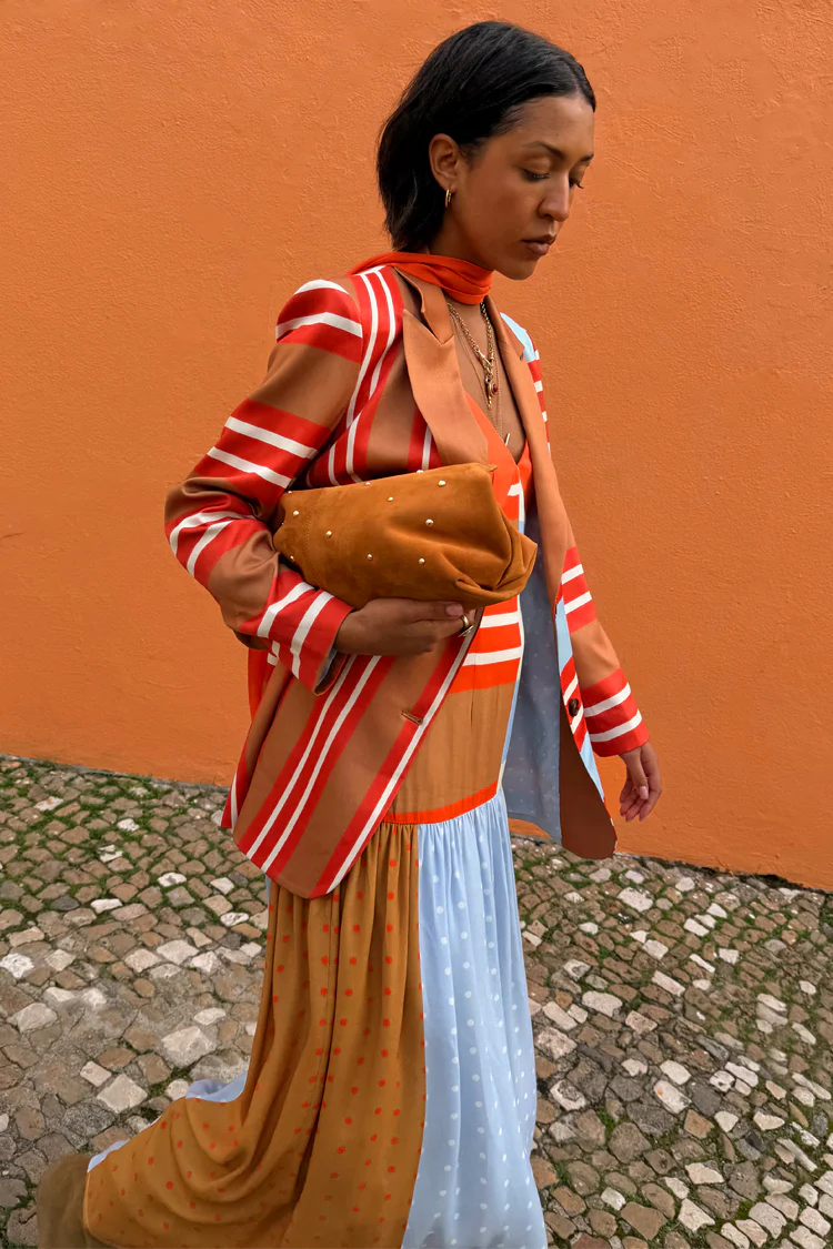 We are obsessed with our multi stripe range! The structured silhouettes, paired with the statement stripe print, brings effortless, feel good dressing to your wardrobe. The soft touch satin-esque base, paired with the longline, slightly oversized fit allows you to style easily. Pair with the matching marnie trousers and shirt for a smart casual everyday wear.Â